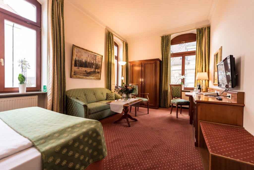 Stilvolles Design, warme Farbtöne. Die großzügigen Zimmer überzeugen durch die Kombination von schlichter Eleganz und moderner Ausstattung. Drei Zimmer haben Kachelöfen aus der Meißner Porzellan-Manufaktur.